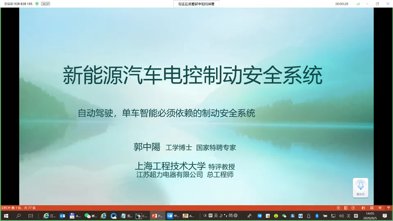 2020年9月5日14:00-16:00,国家特聘专家郭中阳教授在华为云会议平台暑期公司学员做题为《新能源汽车电控制动安全系统》的线上专题讲座。此次讲座由yl6809永利崔国华教授主持,257名暑期公司学员在线聆听讲座。