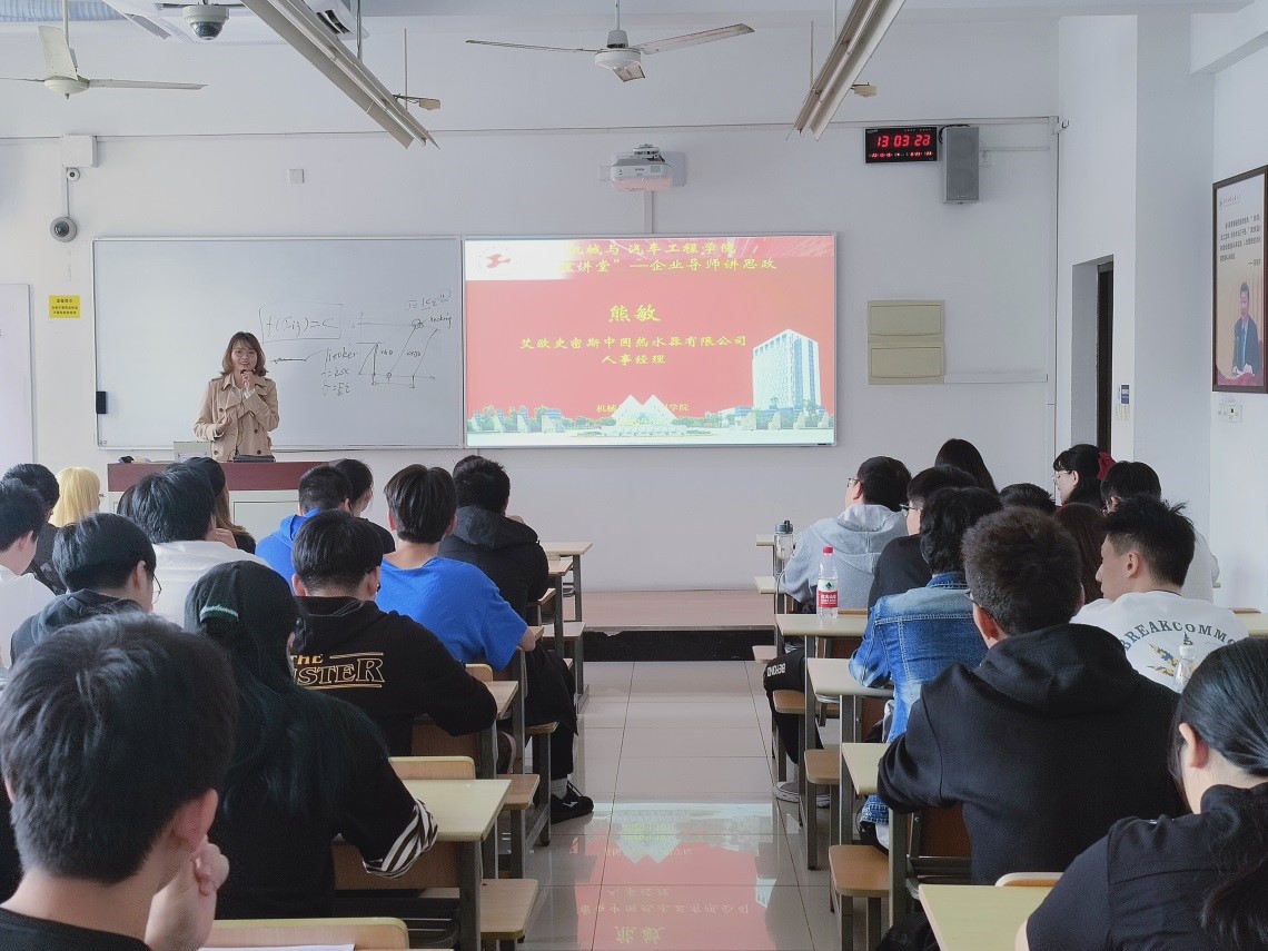 艾欧史密斯中国热水器有限公司上海分公司人事经理熊敏从“对质量的不懈追求、对技术的笃信、坚守商业道德准则”的公司文化谈起,指出同学们只有通过刻苦学习提高本领,才能在未来职场中“出彩”。同时她希望同学们尊重规矩纪律,培养自我管理、自己约束的能力,做到在任何情况下,思想上不忘纪律观念,行动上不违反各项纪律和规章制度。最后,她建议同学们主动将“小我”规划放在“大国”发展的格局中,养成独立自主解决问题的能力,在遇到困难时,主动思考勇于面对。
