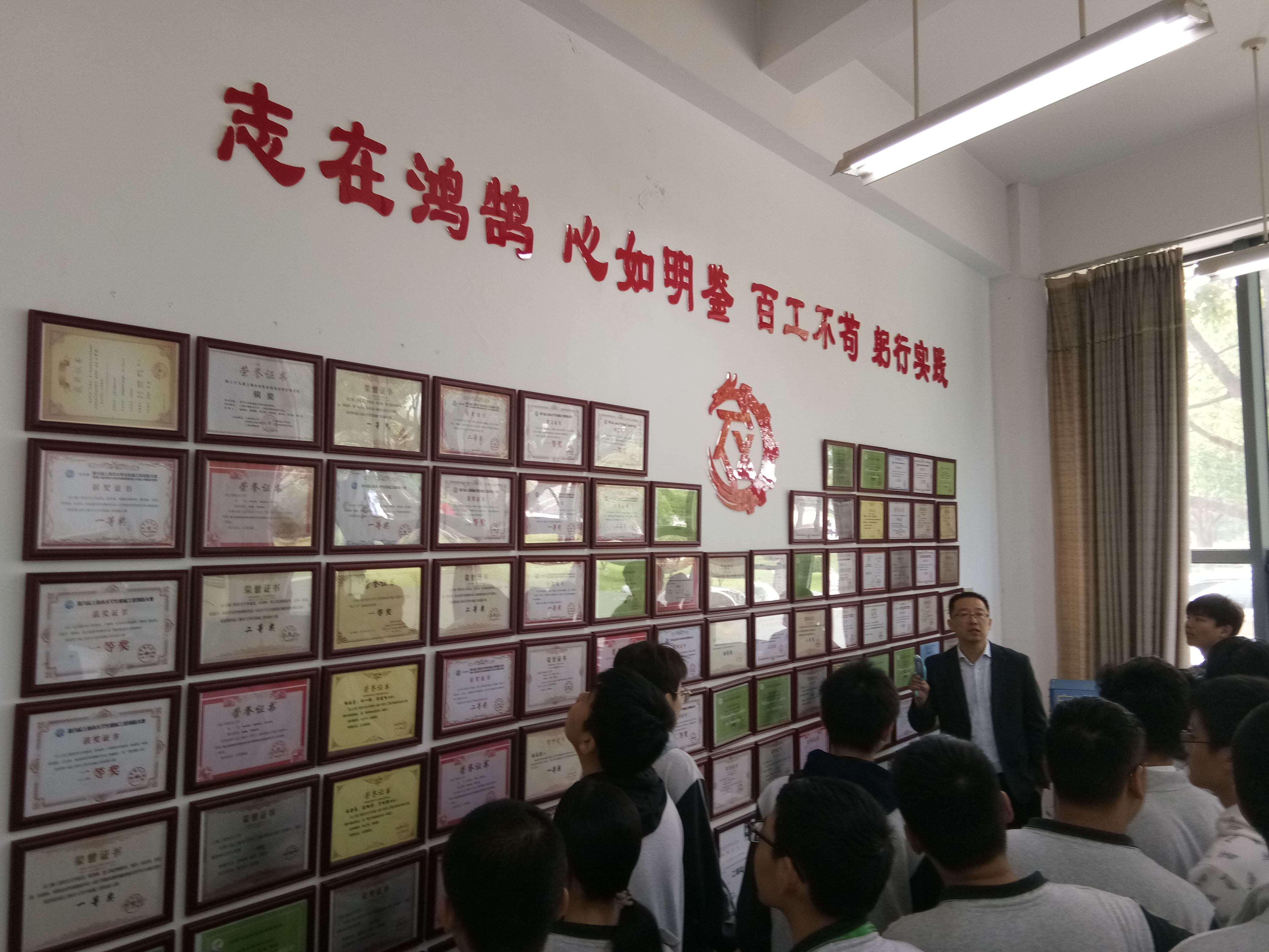 在公司机械创新基地的荣誉室里,同学们盯住荣誉墙看呆了:墙上齐刷刷地挂满了公司、公司、员工获得的各种奖状,真是“琳琅满目”,令人眼花缭乱。这面荣誉墙就是一面镜子,彰显的是气质,比拼的是实力。两个多小时,美丽的初见短暂而甜蜜,同学们依恋不舍地离开了校园。这次相见,他们添注了活力,激发了热情,坚定了梦想。他们不愿停留在今日的“一见钟情”,也不满足于他日偶然的碰面,而是决心历练3年,期待今后能与“她”有4年的朝夕相伴。