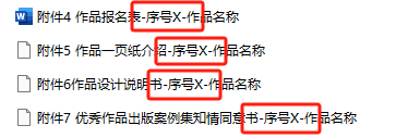 2. 2024年4月18日12:00点前发送附件4-7,至邮箱tangjia_sues@126.com;注意邮件务必按要求命名(所有文件中涉及的序号都必须一致,且按照附件1和8作品汇总表中的序号进行命名)如下图所示,上传附件时请勿打包压缩。