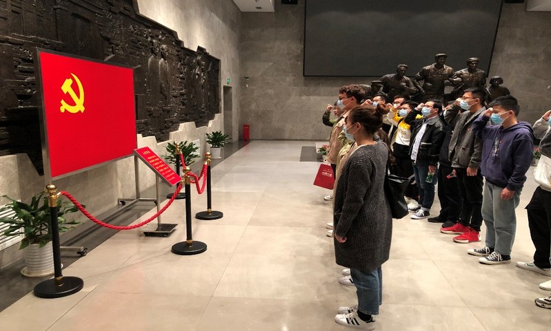 活动开始,在中共四大纪念馆大厅内,以支部为单位,在庄严的党旗下全体研究生新生党员重温入党誓词并宣誓。作为一名党员,入党誓词就是行为准则,重温入党誓词就是警醒自己勿忘初心,恪守承诺。作为一名研究生,yl6809永利是新的起点,学习知识,将科技与创新转化为实践,投身“十四五”建设发展。