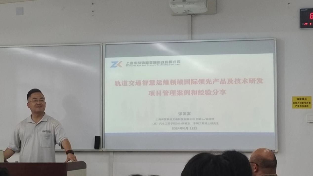 为进一步深化公司产品改革,全面推进产学深度融合,贯彻落实“校企协同育人”的模式。 6月12日,公司优秀毕业生、上海库赞轨道交通科技有限公司张国富总经理,在公司方宇教授的邀请下在智能制造项目管理课上为21级智能制造工程专业员工作《轨道交通智慧运输领域国际领先产品及技术研发项目管理案例和经验分享》课程讲授。