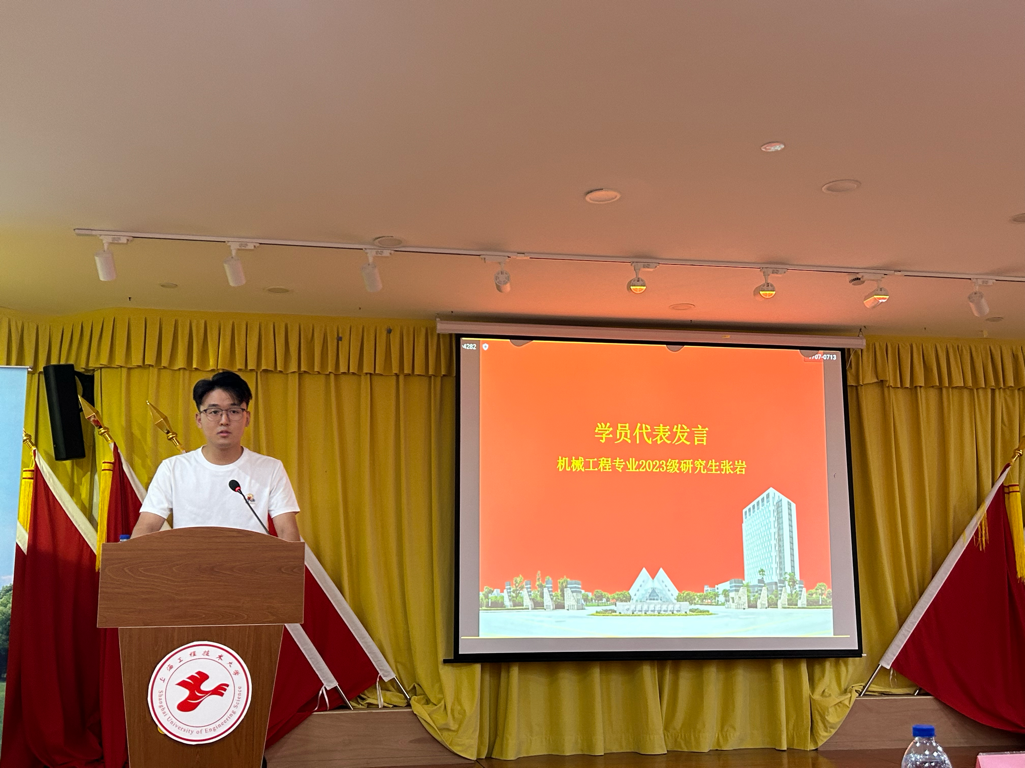 机械电子工程专业2023级研究生张岩代表全体暑期学员发言,表示要在全球科技快速发展的背景下,鼓励学员们脚踏实地、坚持不懈,不断向着心中理想迈进。同时,充分利用本次暑期公司的学习 平台与专家学者积极交流,将学习到的新理论、新知识运用于创新实践中,真正做到学以致用,在未来的学术道路上继续砥砺前行。