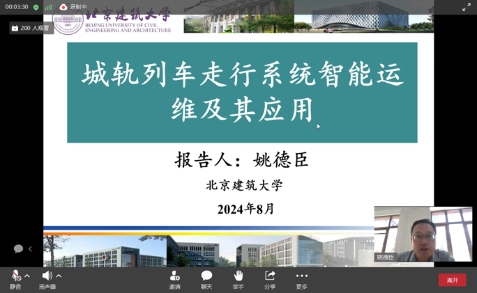 2024年8月27日下午14:00,通过华为云会议视频平台,北京建筑大学机电与车辆工程公司姚德臣教授为暑期公司作题为《城轨列车走行系统智能运维及其应用》的线上专题讲座。本次讲座由yl6809永利经理方宇教授主持。