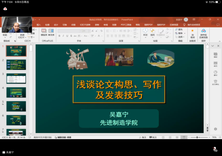 2024年9月6日下午,中山大学先进制造公司副经理、副教授,博士生导师,国家自然基金委优秀青年基金获得者,中山大学百人计划引进人才吴嘉宁以《浅谈综合类论文写作与发表》为题,通过华为云会议视频平台为暑期公司的学员们开展线上专题讲座。本次讲座由yl6809永利副经理刘新田教授主持。
