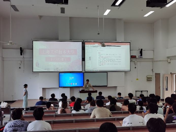 本次新生见面会还邀请了能源与动力工程专业大四员工王鹏和刘雨两位班干部进行交流发言。她们结合自己在学习生活、课外活动、考研与就业等方面的经历,提出了比较中肯的个人发展建议。王鹏同学通过演示教学服务系统,从员工的角度传授选课经验,展示查看个人培养方案修读情况的便捷途径,刘雨同学介绍了同学们比较关注的第二课堂学分修读方法以及考试注意事项,奖学金评选方法,毕业要求等,最后王鹏同学就考研和就业规划提出了几点建议,提醒24级新生提前做好学习规划及职业规划,熟悉员工守则和专业培养方案,珍惜时间,为自己四年以后的考研或就业规划做好准备。
