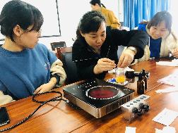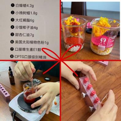 在专业老师的指导下,每位老师动手制作了一支植物精油口红。