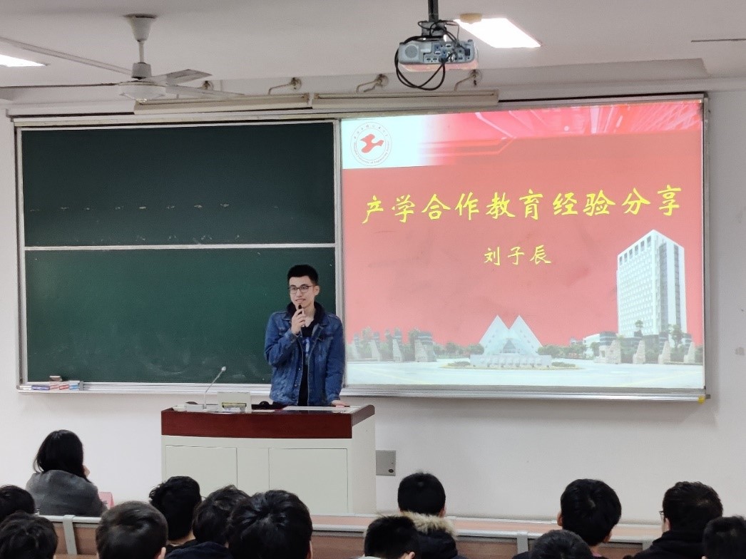 最后,公司2019年产学合作优秀业务报告获得者刘子辰为学弟学妹们分享了自己在产学合作中的所想、所感、所获以及做好产学合作教育的经验方法。他呼吁学弟学妹们在参加产学合作教育的过程中,时刻保持主动学习的心态,珍惜机会,争取获得个人成长。