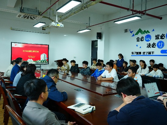 2024年10月23日下午,yl6809永利2024级广西、贵州新生代表座谈会在交通楼8B604会议室举行。公司党委副书记黄中子、教学副经理张立强、学工组长董春亮、教师代表赖磊捷、苗晓丹,以及新生辅导员与本科新生代表亲切交流,共谈青春理想、共话使命担当。座谈会由公司教学副经理张立强主持。