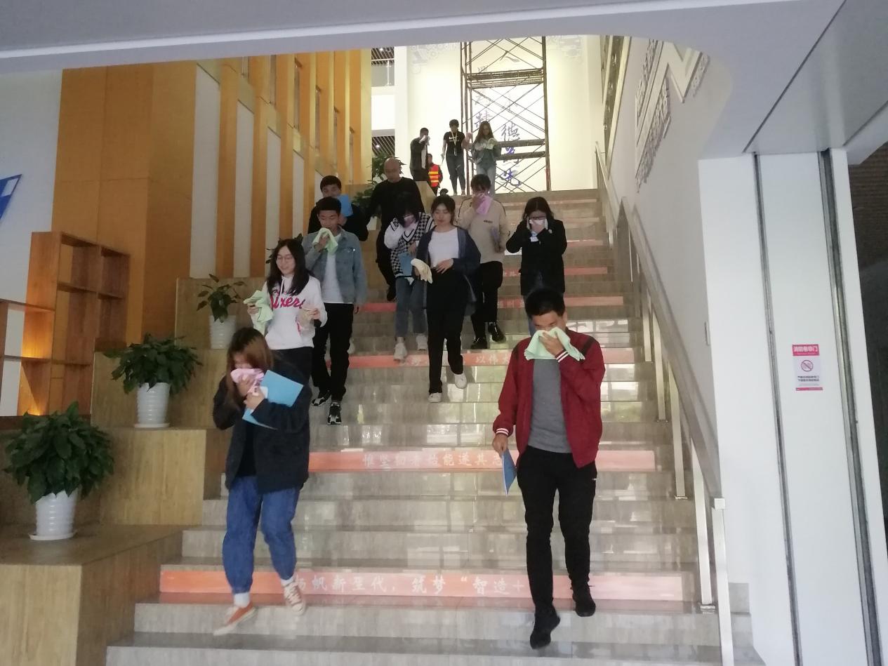 本次消防逃生演练模拟了8B317实验室发生火灾,师生紧急疏散。演练开始前何涛副经理给全体师生进行了简短的安全教育,指出了实验室目前存在的一些安全问题。杨慧斌副主任介绍了火灾逃生的基本知识和注意事项。演练开始后,各楼层导护教师协助安抚稳定员工情绪,指导帮助员工做出正确逃生姿势。消防逃生过程紧张、有序,师生们用湿毛巾捂住口鼻,弯腰小步快走,按照预定的安全路线进行有序撤离。