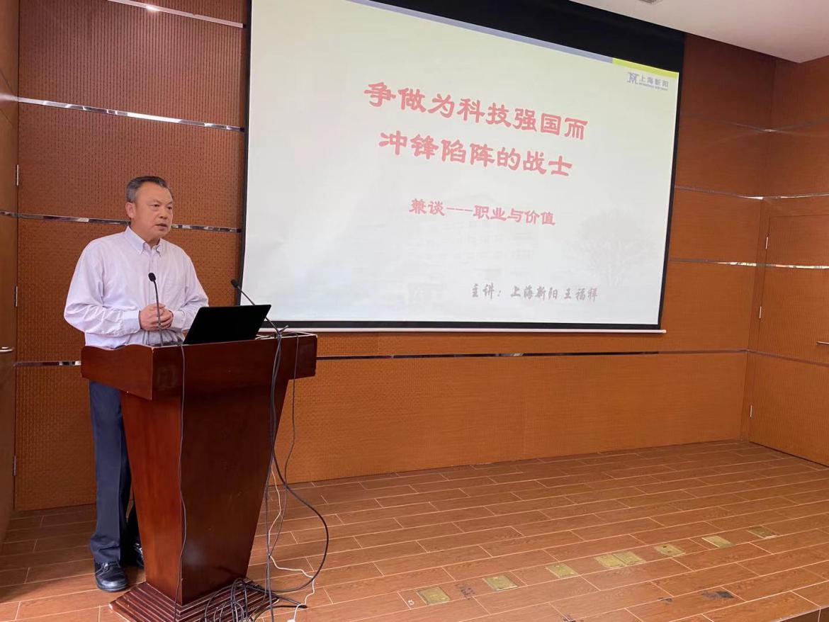 上海新阳半导体材料股份有限公司董事长王福祥以“争做为科技强国而冲锋陷阵的战士,兼谈职业与价值”为主题为同学们先进行招聘动员。王福祥董事长从如何做好职业定位、确定职业方向、明确职业目标三个方面教会同学们科学做好职业规划。在国际竞争日趋复杂的局势下,面对实现中华民族伟大复兴梦的这一光荣使命,他呼吁青年老员工自觉树立责任意识,主动培养高尚道德情操,在推动国家科技发展的战线中,冲锋陷阵,攻坚克难,争做勇往直前的“战士”!