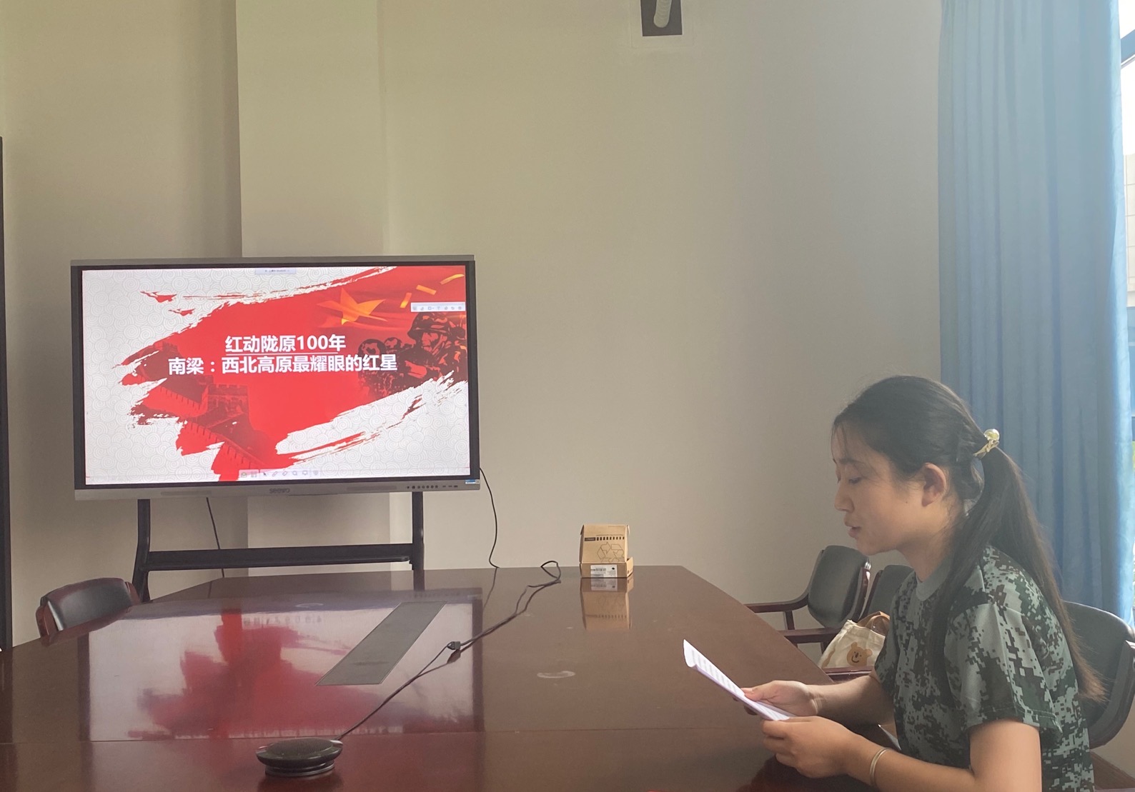 公司带训老师及员工共同观看了党史百年专题记录片《我们走在大路上——强军战歌》,员工们纷纷感叹我国军事力量之强大,人民解放军之英姿,将爱国爱党爱军之情深植于心。2020级车辆工程专业高晨菲作为军训员工代表,声情并茂地为大家介绍了她的家乡南梁的红色故事,从南梁开展革命武装斗争、创建革命根据地、陕甘边区苏维埃政府、“两点一存”光耀千秋南梁精神代代传五个篇章介绍了南梁的红色历史、着重阐述了“面向群众、坚守信念、顾全大局、求实开拓”南梁精神的内核。在抗日战争和解放战争中,南梁精神以它巨大的凝聚力和感召力,激励着庆阳老区人民奋勇前进。在建设新中国、深入推进改革开放、打赢脱贫攻坚战、迈向现代化的征程中,南梁精神激励了一代又一代老区人民,取得了一个又一个辉煌。南梁精神载入中国共产党人谱写的光荣史册,成为感召后人,启迪思想的宝贵精神财富。