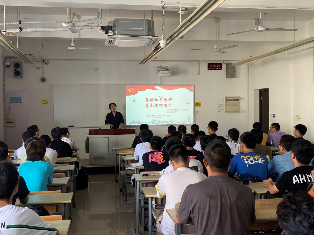 10月5日上午,在教学楼B310机械设计制造及其自动化专业员工党支部以“赓续红色精神、青春信仰同行”为主题对2021级智能制造工程专业新生进校了入党启蒙教育。党支部书记汪文婷老师分别从中国共产党是怎样的执政党?、学习优秀共产党员、向身边的党员学长学习、怎样填写入党申请书?党支部王昊同志、方翼婷同志谈入党初心。此次入党启蒙教育鼓励青年学子在思想上积极向党组织靠拢,以实际行动为实现中华民族伟大复兴的中国梦贡献力量。