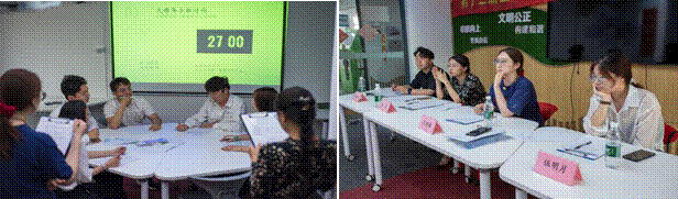 本次奖学金评选秉持公平、公正、公开的原则,前期对报名参赛选手的申请材料进行综合评定,最终选拔出11名选手进入团队赛。本次团队赛共分为两轮进行:第一轮是选手自我介绍,参赛选手按抽签顺序进行自我展示;第二轮为无领导小组讨论,参赛选手按照抽签顺序分为两组,每组针对不同题目进行讨论,各抒己见、精诚合作,最终达成统一意见,分别展示最终成果。