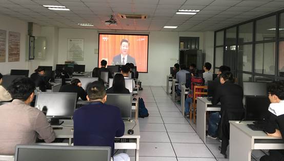 在场师生认真聆听了习近平总书记代表十八届中央委员会向大会作报告。党的第十九次全国代表大会,是在全面建成小康社会决胜阶段、中国特色社会主义发展关键时期召开的一次十分重要的大会,大会认真总结过去5年工作,回顾党的十八大以来以习近平同志为核心的党中央团结带领全党全国各族人民坚持和发展中国特色社会主义的历史进程和宝贵经验,对党和国家事业作出规划和部署。每人都沉浸在党的十九大的浓厚氛围里,大家聚精会神听报告、全神贯注作笔记,不时激动,不时自豪,不时骄傲,表现出了对党的无限热爱和对党的第十九次代表大会的热切期待。