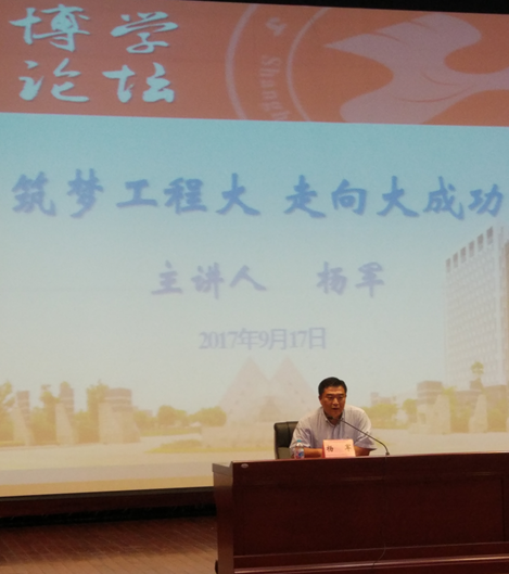 917日下午,校员工会常务理事、上海烟草机械有限责任公司副总经理杨军应机械工程公司邀请回到母校,在志宏堂举行了题为“筑梦工程大,走向大成功”的博雅讲堂之知名员工讲座,来自公司的全体2017级新生参加了讲座。讲座由公司党委副书记王东阳老师主持。