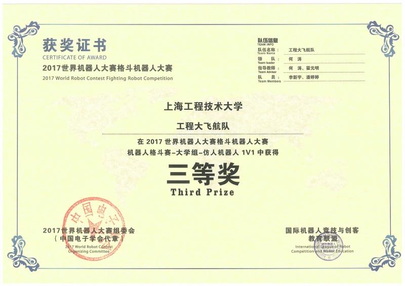 823日至827日,世界机器人大会在北京举行,中共中央政治局委员、国务院副总理刘延东出席世界机器人大会开幕式并讲话。作为大会三大板块之一,机器人大赛被誉为机器人界的“奥运会”。 公司首次派出了由机械工程公司员工组成代表队,在指导教师何涛、潘颖、赖磊捷、杜向阳、朱姿娜、徐震等带领下参加该项大赛。经过激烈的角逐,公司获得了一等奖1项、二等奖1项、三等奖3项、“优秀指导教师”1项的优异成绩。