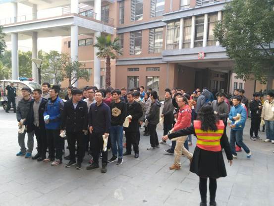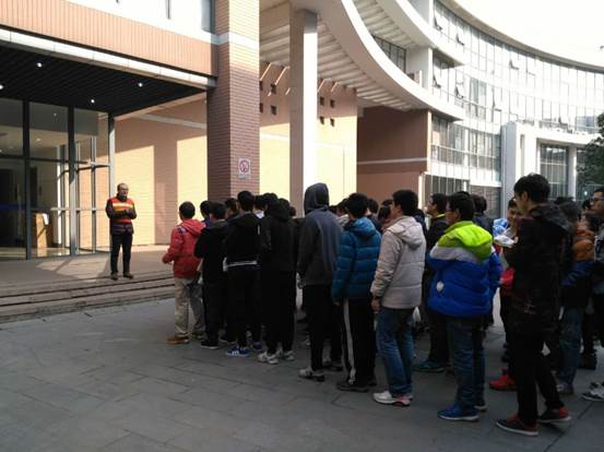 为进一步强化消防安全教育,提高师生火场应急逃生和自我防范能力,129日上午,公司在实训楼4号楼举行消防疏散逃生演练。本次演练目的即“珍爱生命、远离火灾”。公司保卫处相关人员现场指导同学们如何逃生疏散、应急救援等,公司实验室教师参与了演练的引导疏散指挥工作。整个演练活动组织严谨,紧张有序。参加演练的同学严肃认真,服从指挥,不抢先、不推搡、不拥挤,没有发生推、拉、拥、 挤等现象。集合完毕后各班班长迅速清点人数并向现场总指挥汇报。从下达命令演练开始到最后一名同学疏散、 到安全集中点,仅用了 250秒。