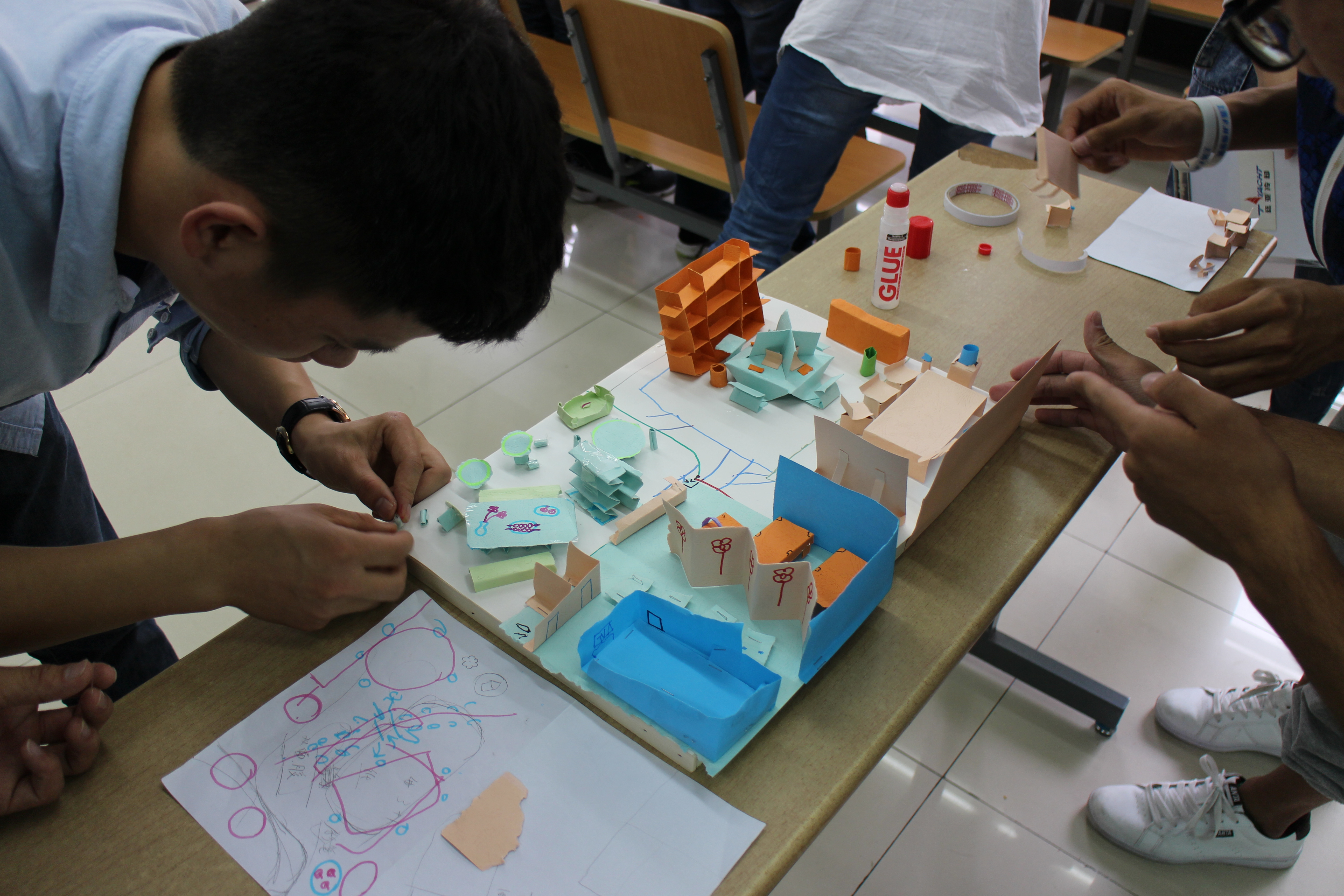 复赛分为自我介绍、挑选组员、任务选择、划地块、工具选择、任务制作、评委提问、投票等八个环节。通过抽签,20位选手分为4个小组,题目公布后,各小组自由讨论,选手们选择合适的工具后,在有限的时间内完成了手工制作任务,做成了三维立体模型,并通过演讲方式展示该组策划方案及制作成果,充分展示出团队合作与个人演讲能力。经过评委们的认真评选,最终5名选手进入廷亚奖学金决赛。