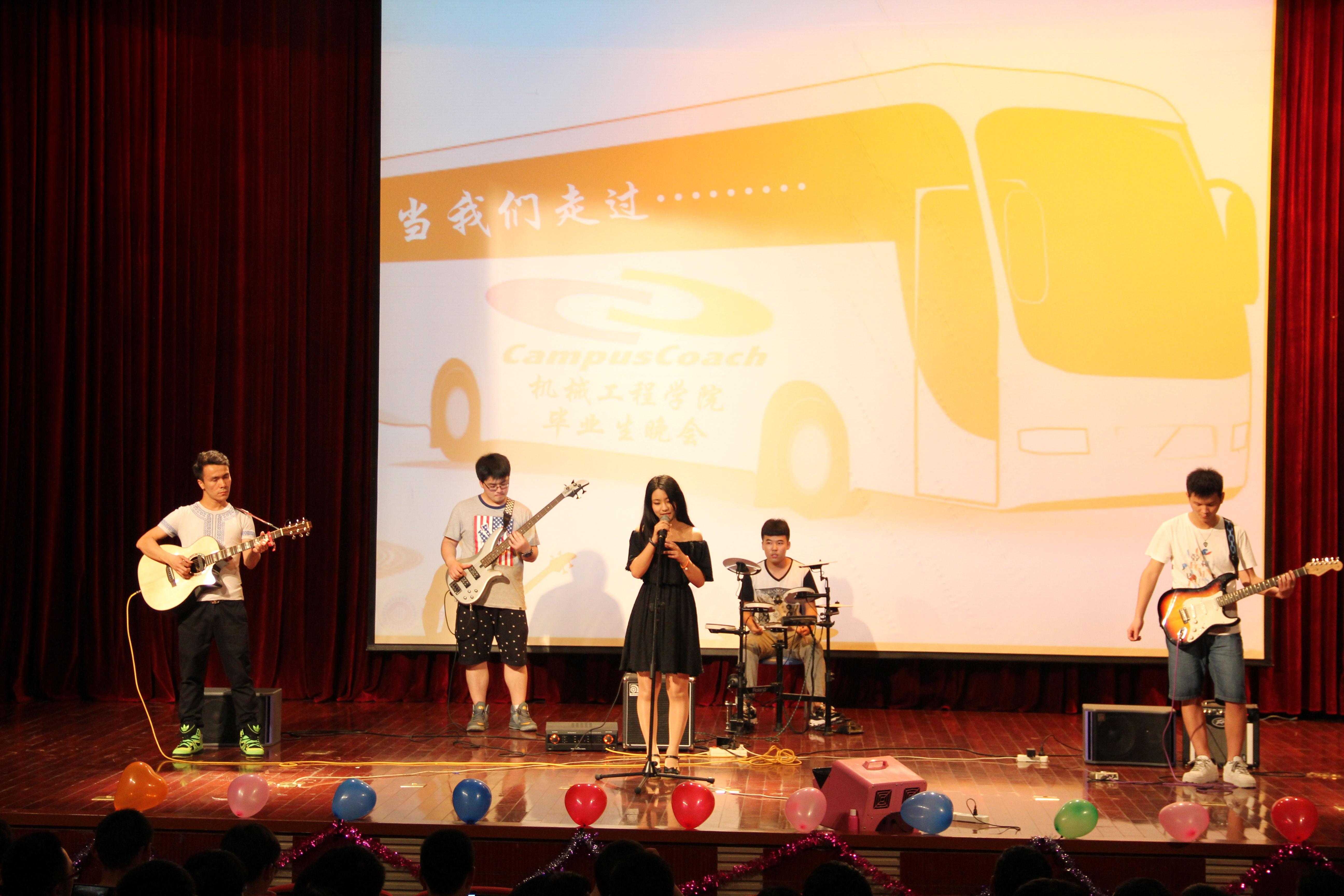 晚会在乐队带来的劲歌中开场,乐队令人振奋的歌声带动了场下观众的热情。晚会始终围绕“当我们走过”主题,为毕业生们献上一场饱含祝福与期望的文化盛宴。晚会集歌曲、舞蹈、小品、朗诵等多种艺术形式于一体,内容丰富、精彩纷呈。舞蹈《Samba》以其活泼优美、轻快灵巧的特点带动了同学们的气氛,激起一阵阵热烈的掌声。回望尽头留下青葱岁月,展望前方不尽似水流年,一首《遥远的她》勾起了大家对老员工活的无尽回忆。小品《试戏演员》以其诙谐的语言、形象的表演、默契的配合赢得了现场观众的阵阵掌声和叫好声。歌曲《听海》《流浪记》旋律优美、曲风婉转、词义动人,酣畅淋漓地表达了毕业生对老员工活的不舍,对朋友的祝愿,对母校的祝福,将现场气氛推向高潮。最后,晚会在大合唱《让我们一起摇摆》歌声中落下了帷幕。