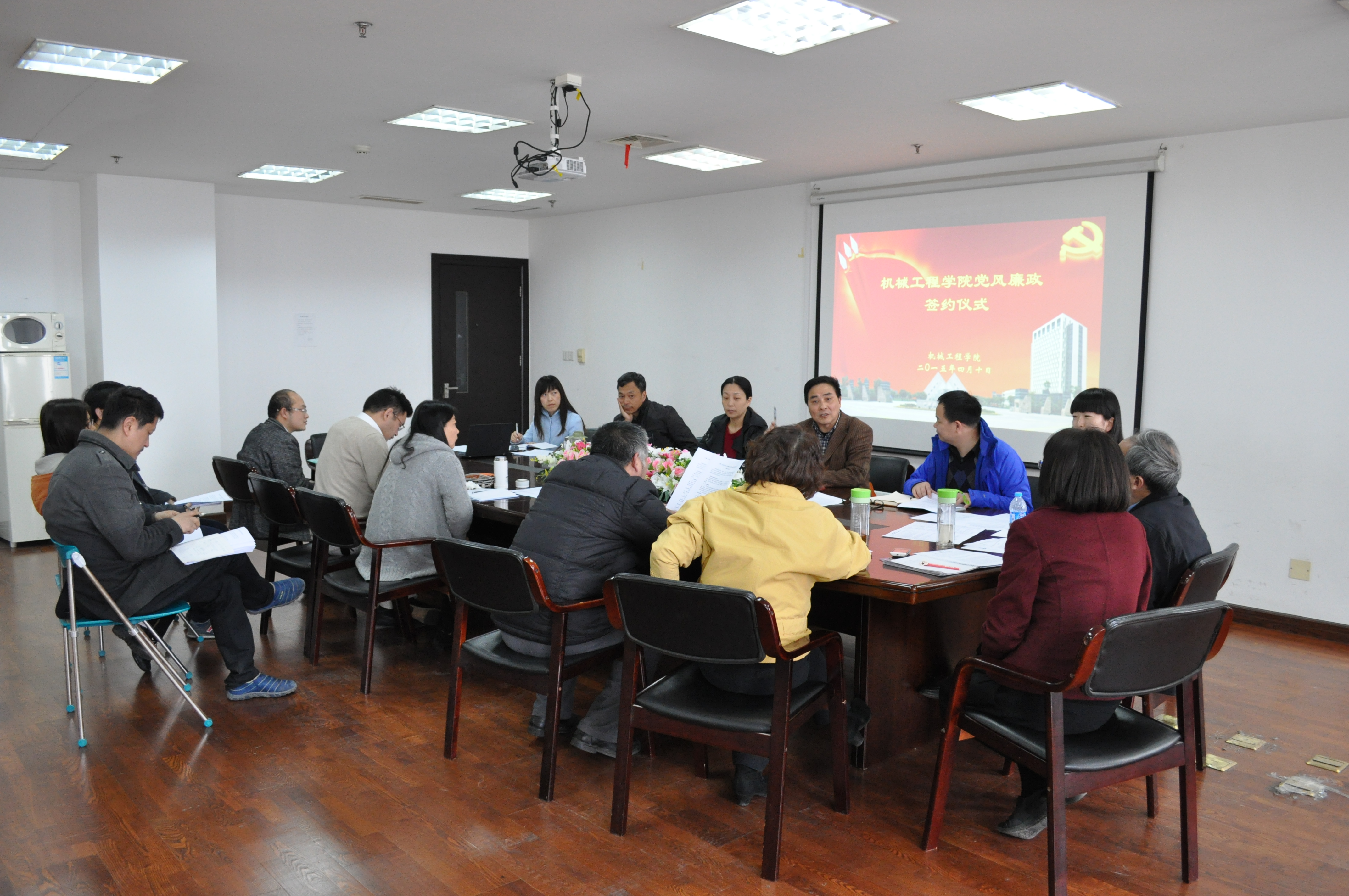 4月10日下午,机械工程公司2015年度目标责任暨党风廉政建设责任签约仪式在会议室举行,公司全体班子成员及系室主任出席了会议,会议由经理程武山主持。
