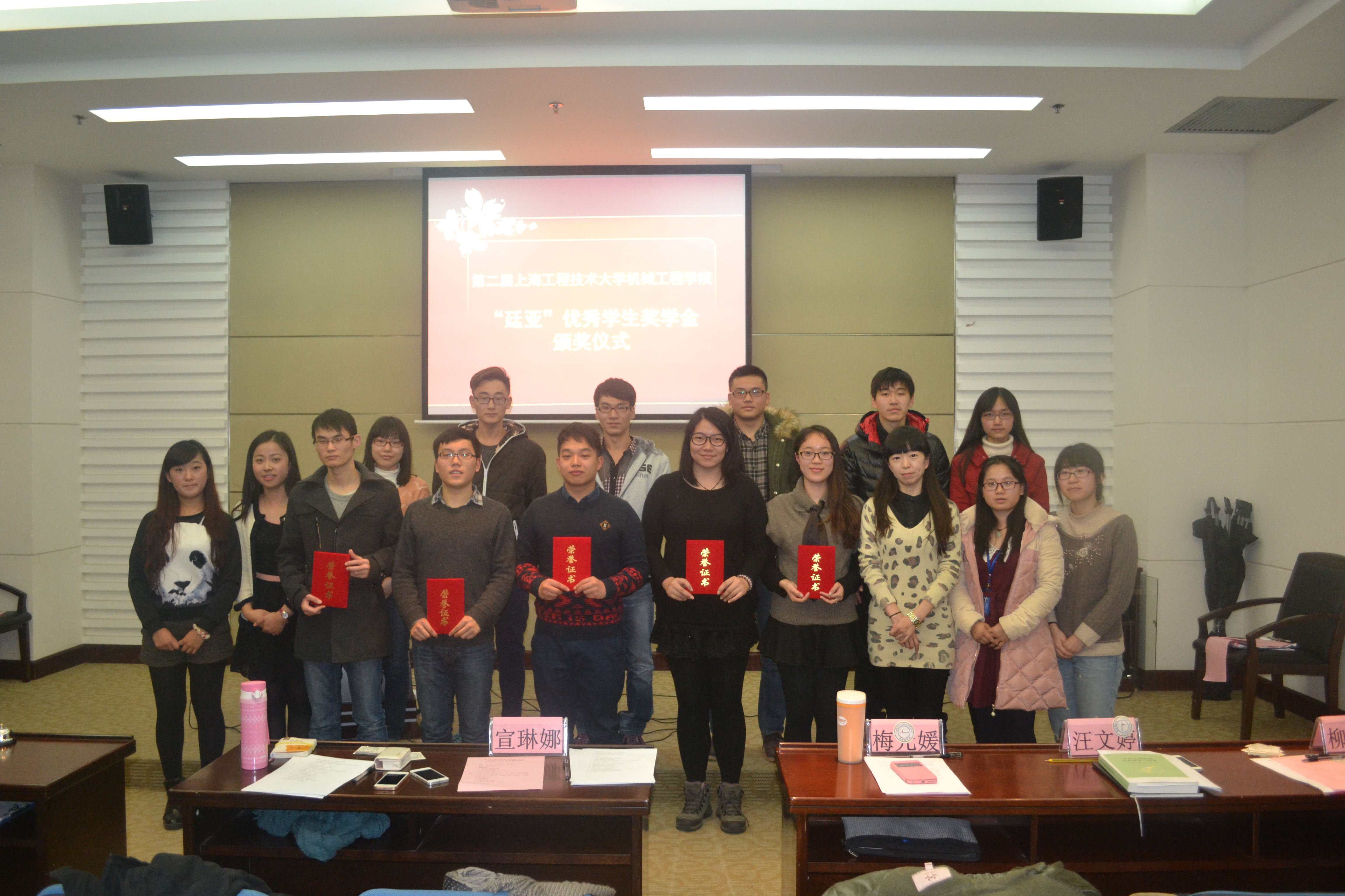 2014年12月29日下午1点,机械工程公司在图文信息中心第四报告厅举办第二届yl6809永利廷亚优秀奖学金评选总决赛暨颁奖典礼,机械工程公司党委副书记梅元媛老师、上海廷亚冷却系统有限公司市场部经理宣琳娜、机械工程公司辅导员汪文婷、柳苗苗老师出席了此次活动。
