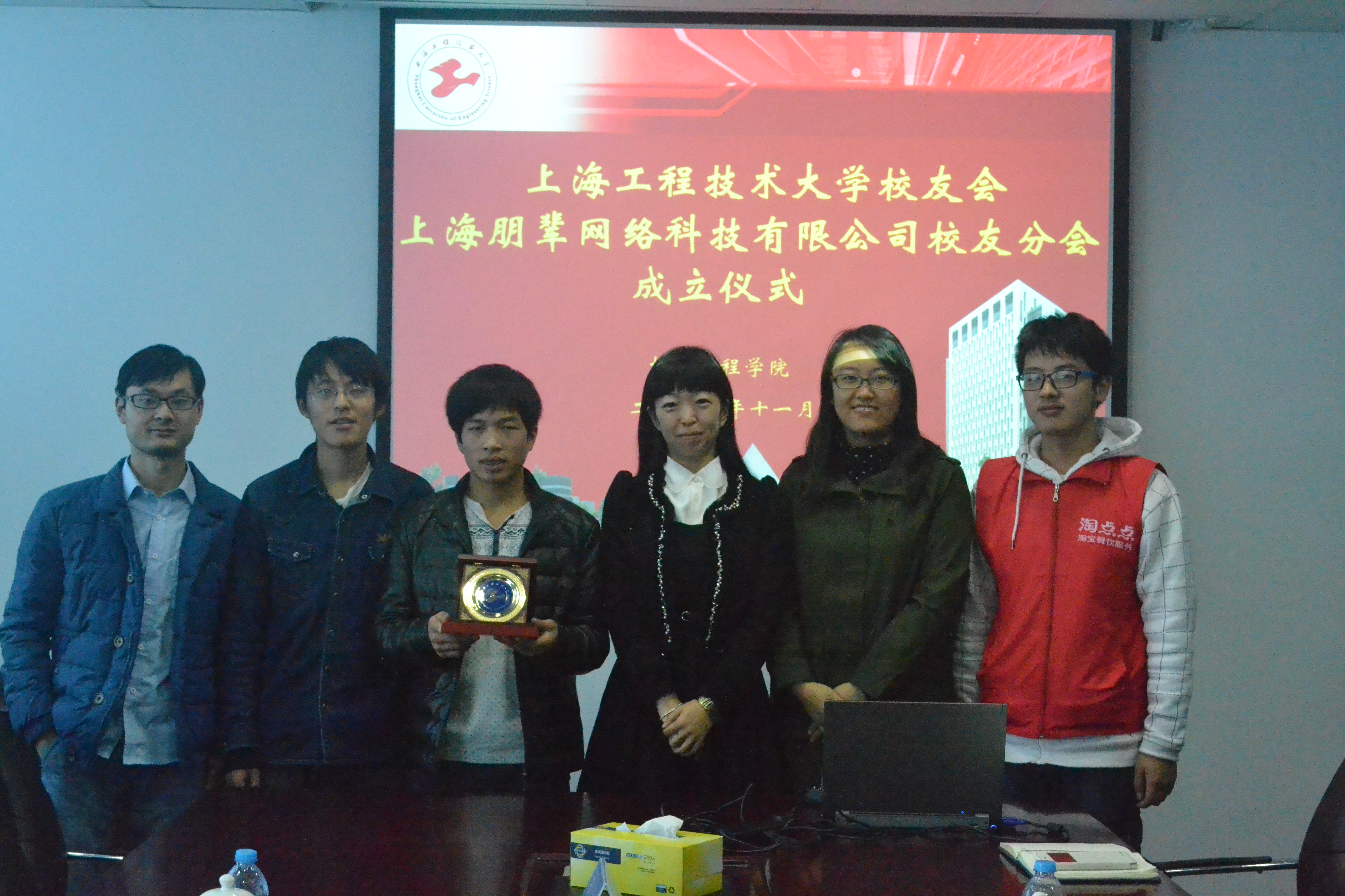 随后,梅书记和上海朋辈网络科技有限公司的负责人曾东为上海朋辈网络科技有限公司员工分会的正式成立揭牌。揭牌仪式后的讲话中梅老师希望员工能够常回母校看看,并要求他们能够在自己的工作岗位中尽职尽责,发扬公司的“勤奋、求是、创新、奉献”精神。