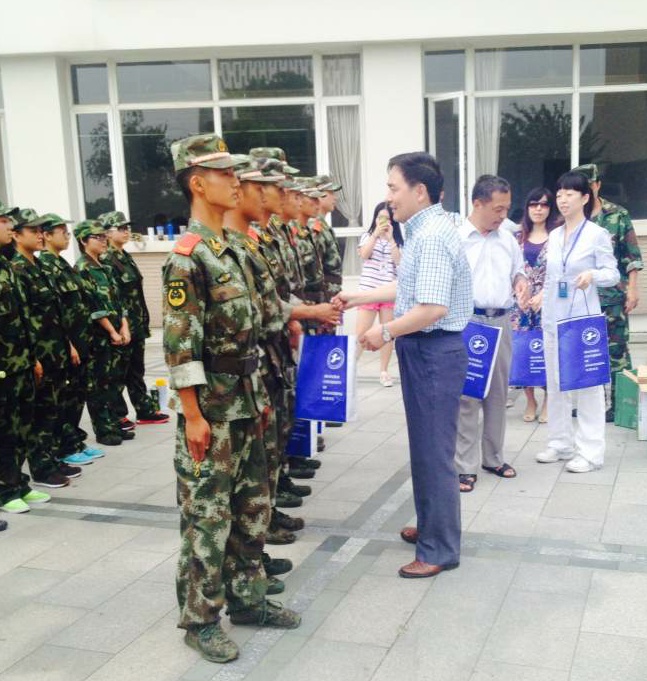 紧接着,公司领导们与一营全体教官亲切握手表达感谢并向他们送上了慰问品以表达公司对他们的感谢之情。营长代表全体教官感谢公司领导的关心,他表示全体教官一定会尽全力带好队伍,为公司争光。