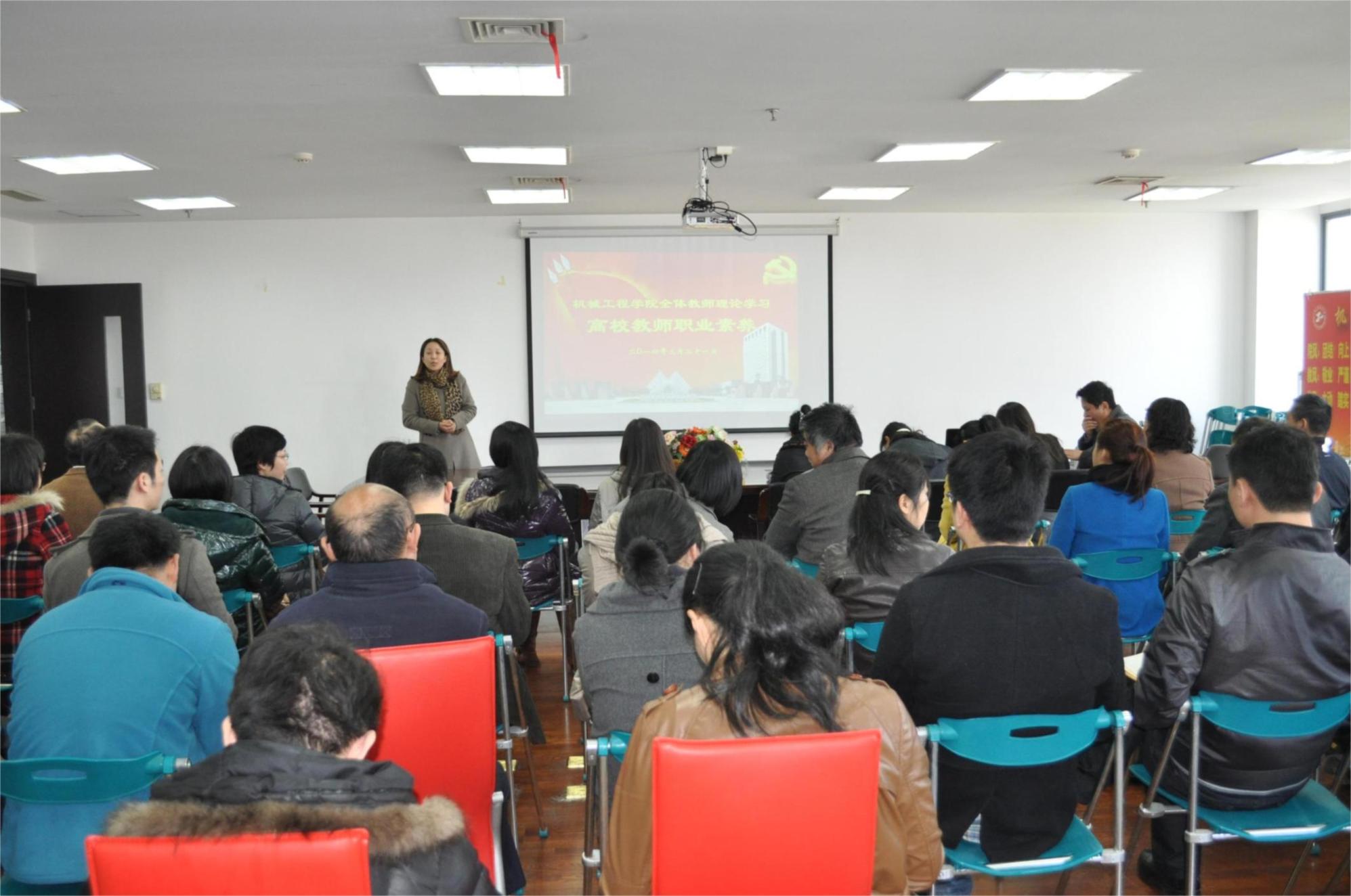 321下午,继公司党的群众路线教育实践活动总结阶段工作之后,机械工程公司党委组织全体教师参加理论学习第二讲—高校教师职业素养,公司全体教师如期参加了会议。会议由公司党委书记虞蓉主持。