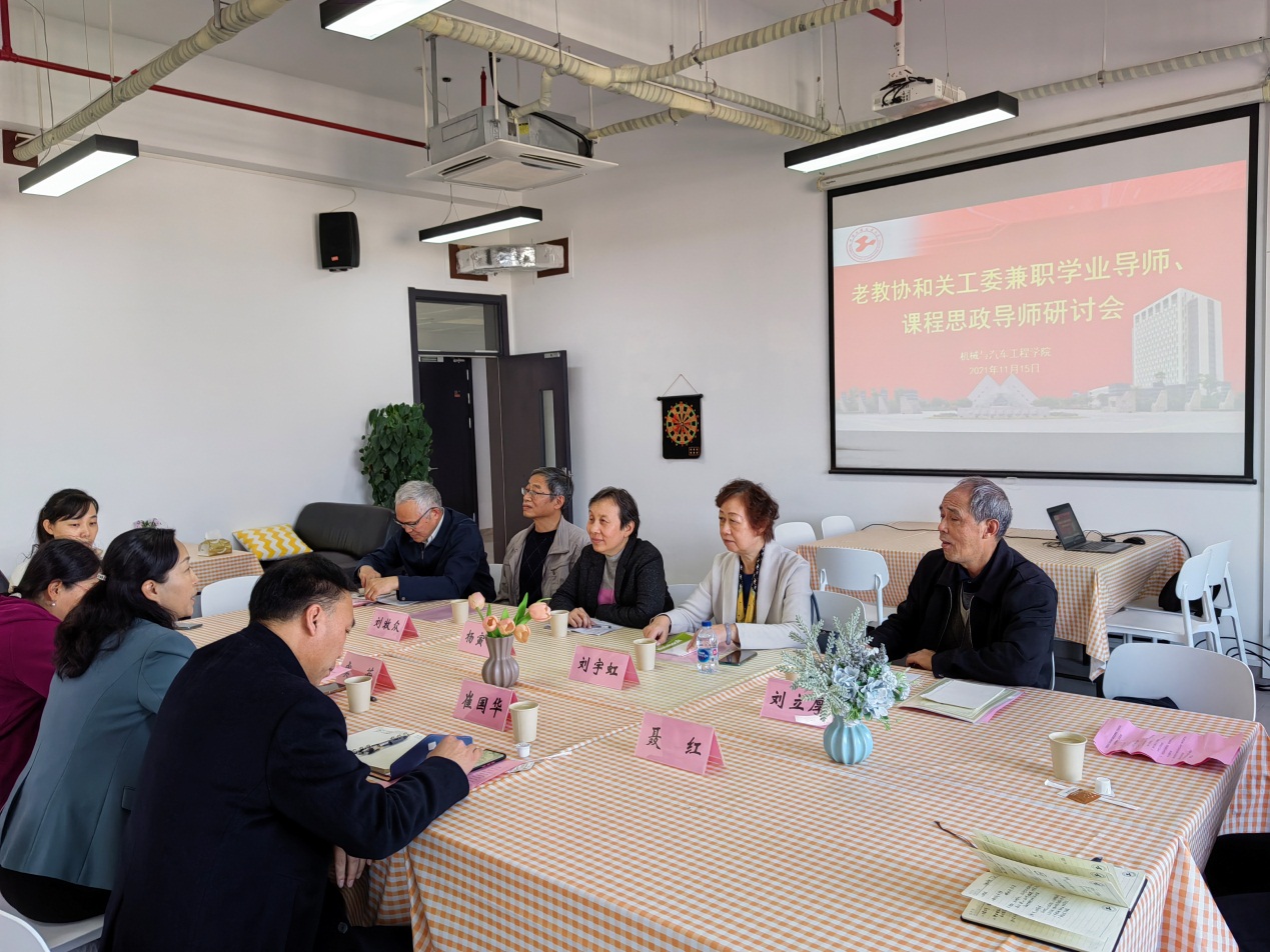 11月15日,yl6809永利(以下简称“yl6809永利”)在交通大楼8B605召开老教协、关工委兼职学业导师、课程思政导师研讨会。机汽公司党委书记虞蓉、经理崔国华、yl6809永利老教协成员、教学督导办主任沙玲、青年教师代表徐斌等参加会议。研讨会由机汽公司党委书记虞蓉主持。