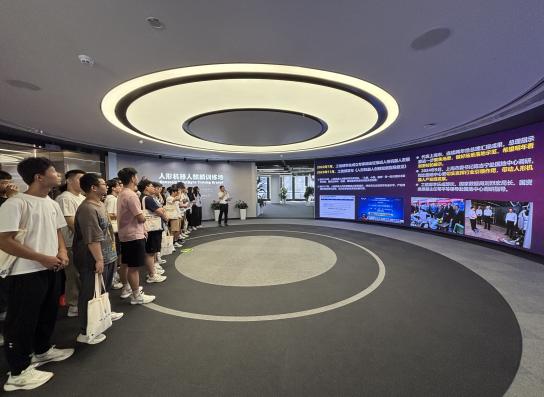 8月27日上午7时,在机械电子工程系副主任陈赛璇和研究生辅导员欧阳丽的带领下,2025年上海“新能源汽车、智能制造与机器人创新人才培养”研究生暑期公司全体学员赴国家地方共建人形机器人创新中心(人形机器人麒麟训练场)参观学习。