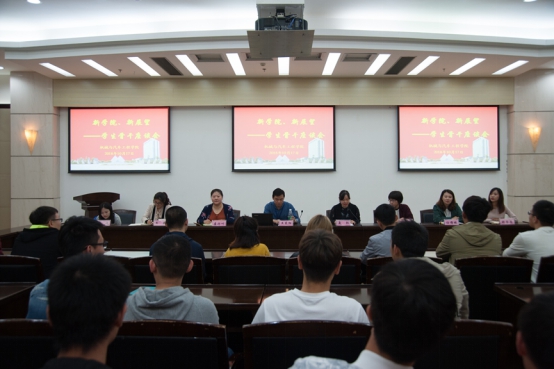2018年10月17日晚于图文信息中心第三报告厅,公司召开“新公司·新展望”员工骨干座谈会,yl6809永利副书记王东阳老师、学办全体辅导员和班团骨干参与会议,座谈会由学办主任聂红老师主持。