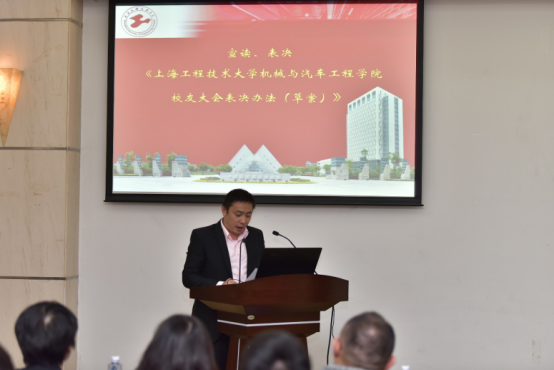 公司党委书记杨寅华介绍本次员工分会的筹备情况,上海工程技术大学员工会办