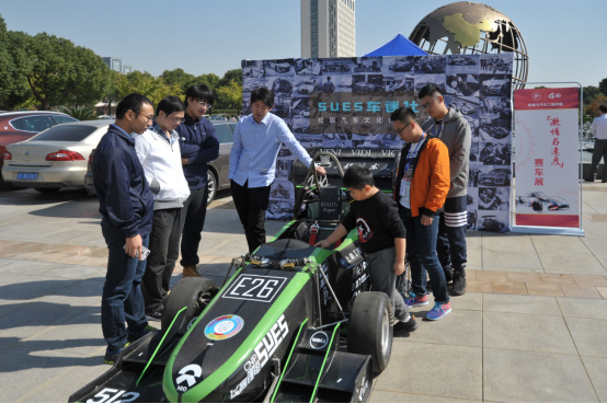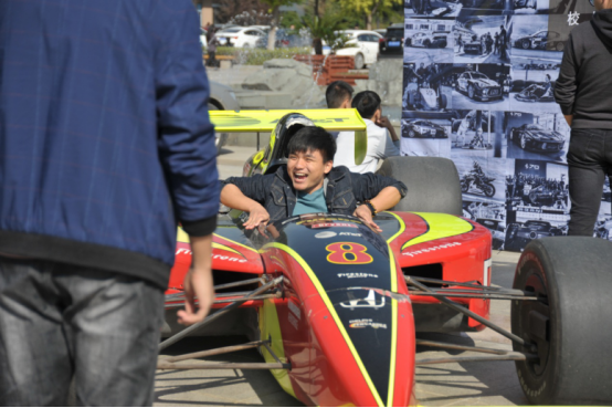 「激情与速度」赛车展,联合公司车迷社,将公司锐狮电动方程式车队的赛车驾驶至图书馆前的博学广场进行展示。