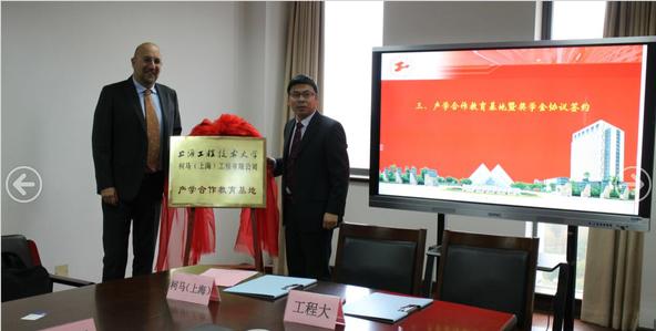 在校企双方见证下,yl6809永利经理方宇与柯马(上海)工程有限公司总经理Mauro Anselmetto进行了产学合作、柯马奖学金签约并为产学合作教育基地揭牌。
