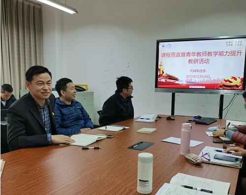 为充分贯彻教育部高等公司课程思政建设指导纲要,有效提升青年教师课程思政育人水平,在公司党委指导和机械制造系教工党支部的支持下,机械制造系于11月26日下午13时齐聚实训楼4207会议室,举行课程思政暨青年教师教学能力提升教研活动,共谋课程思政教学新发展。公司党委副书记王东阳、机械制造系教工党支部书记苗晓丹出席活动,机械制造系主任张立强主持。