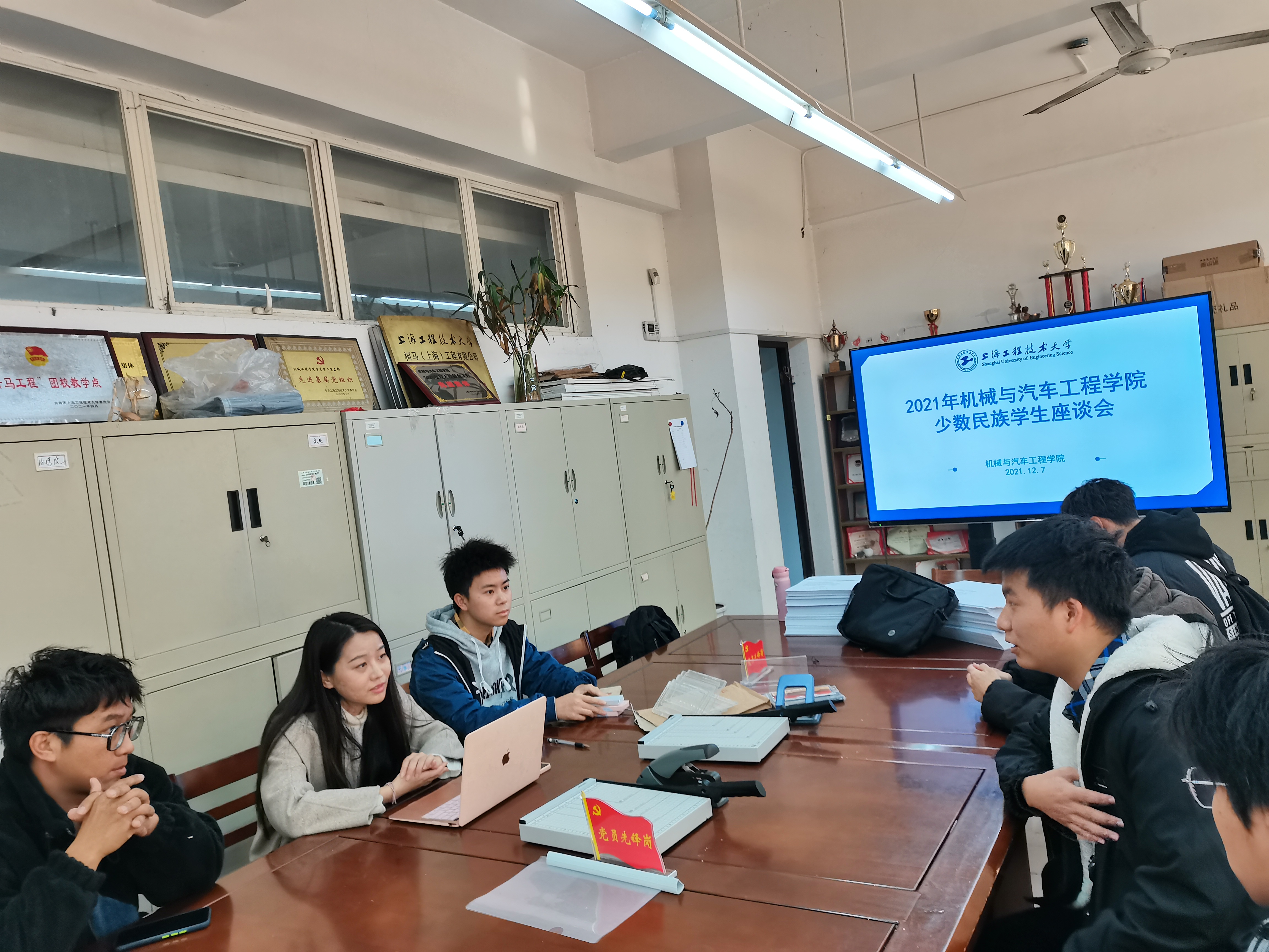座谈会上,李适老师首先介绍了召开此次座谈会的目的,向与会员工介绍了国家、上海市以及公司的少数民族困难生相关资助政策,并希望与会的员工代表们结合在校的学习和生活体验畅所欲言。随后,同学们分别做了自我介绍并谈到了学业、生活中遇到的问题和困惑,李适老师表示针对同学们提出的课程学习、住宿饮食以及人际交往等方面的问题将会进行整理及反馈,座谈会在轻松愉悦的气氛中进行。
