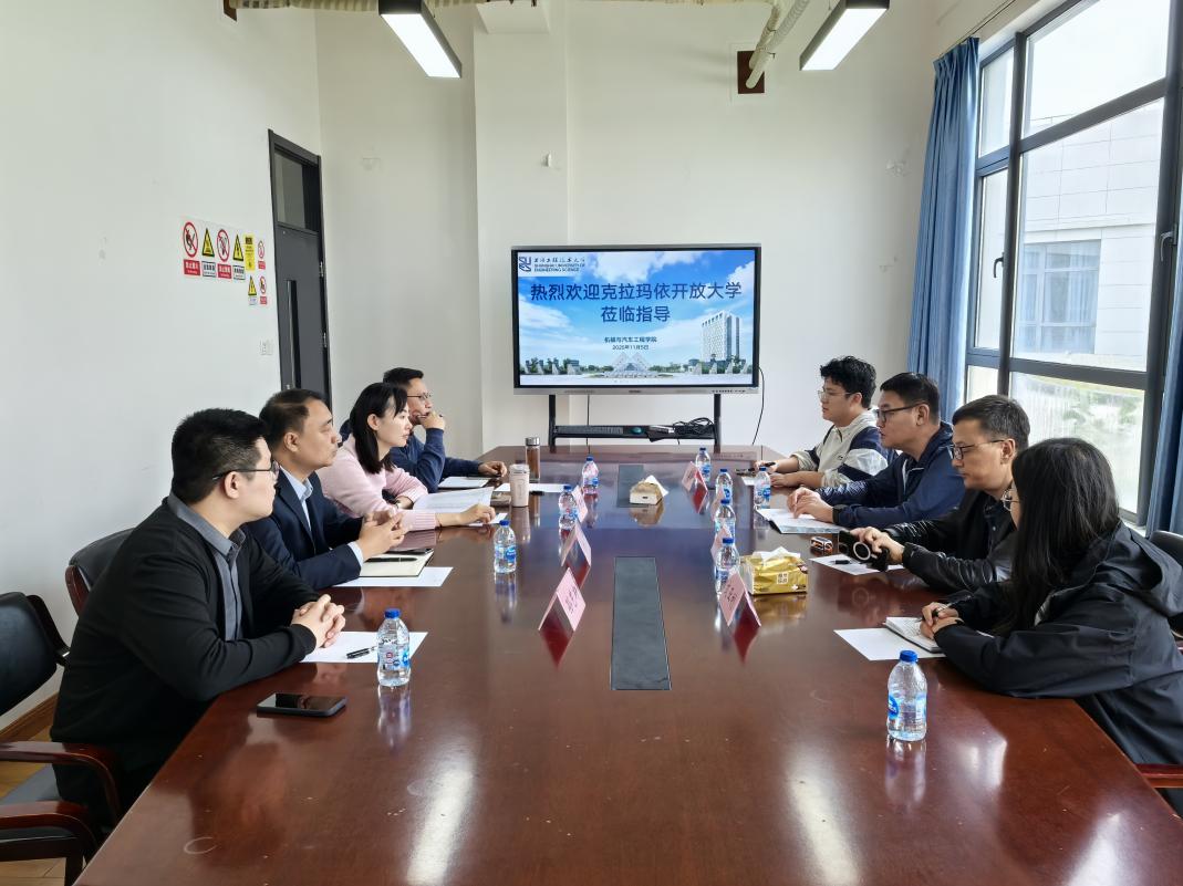 黄中子对克拉玛依开放大学一行来访表示欢迎,希望以此次交流为契机,推动两校在新能源汽车人才培养等领域的深度合作。刘飞、黄孝慈分别介绍了系室的专业设置、课程体系及培养方式等情况。