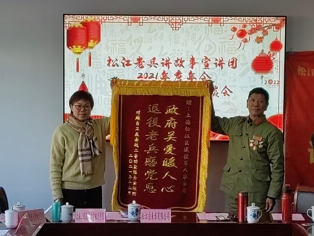 1月14日上午,松江区老兵讲故事宣讲团2021年度总结暨2022年迎春座谈会在松江区自来水有限公司一楼会议室隆重举行。参加此次会议的有区委宣传部、区委老干部局、区军人事务局、共青团松江区委、岳阳、永丰两个街道党建办负责人、区自来水有限公司经理徐玲华、对越自卫反击战二等功臣陈金荣以及松江区老兵讲故事宣讲团全体老兵。公司党委书记虞蓉应邀出席此次会议并讲话。会议由老兵讲故事宣讲团团长朱渭民主持。