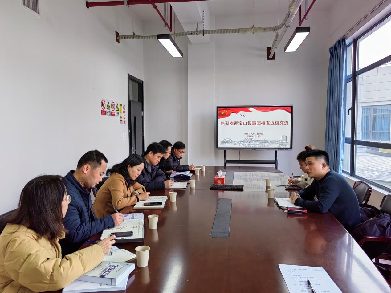 2月23日下午,宝山月新智慧园招商总监、总经理陈希一行2人来公司交流,公司党委书记虞蓉、党委副书记王东阳、公司党政办主任蒋春雷、汽车服务工程系主任马其华、实验中心主任马西沛、汽车工程系副主任范平清参加交流座谈,交流会在现代交通工程中心8B656会议室举行。