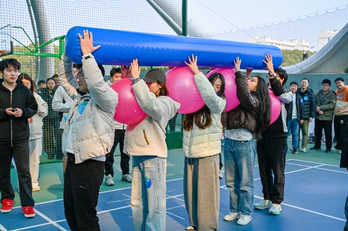 本次活动共设“眼明手捷”“携手并进”“一圈到底”“一鼓作气”等团体项目。赛场上,师生默契配合、协同奋战,共享运动乐趣。