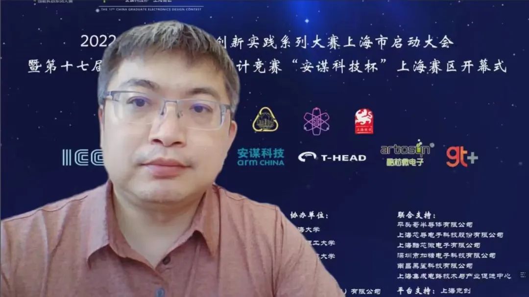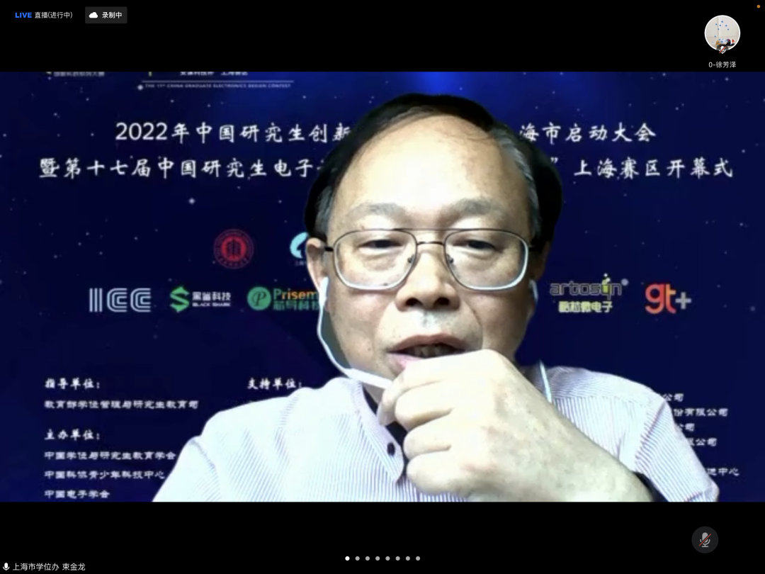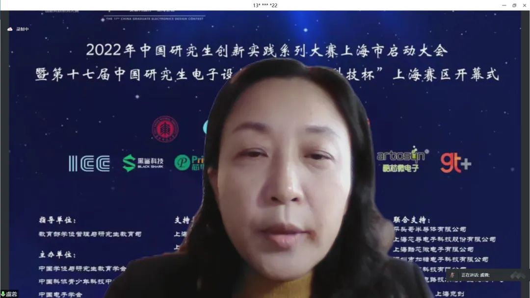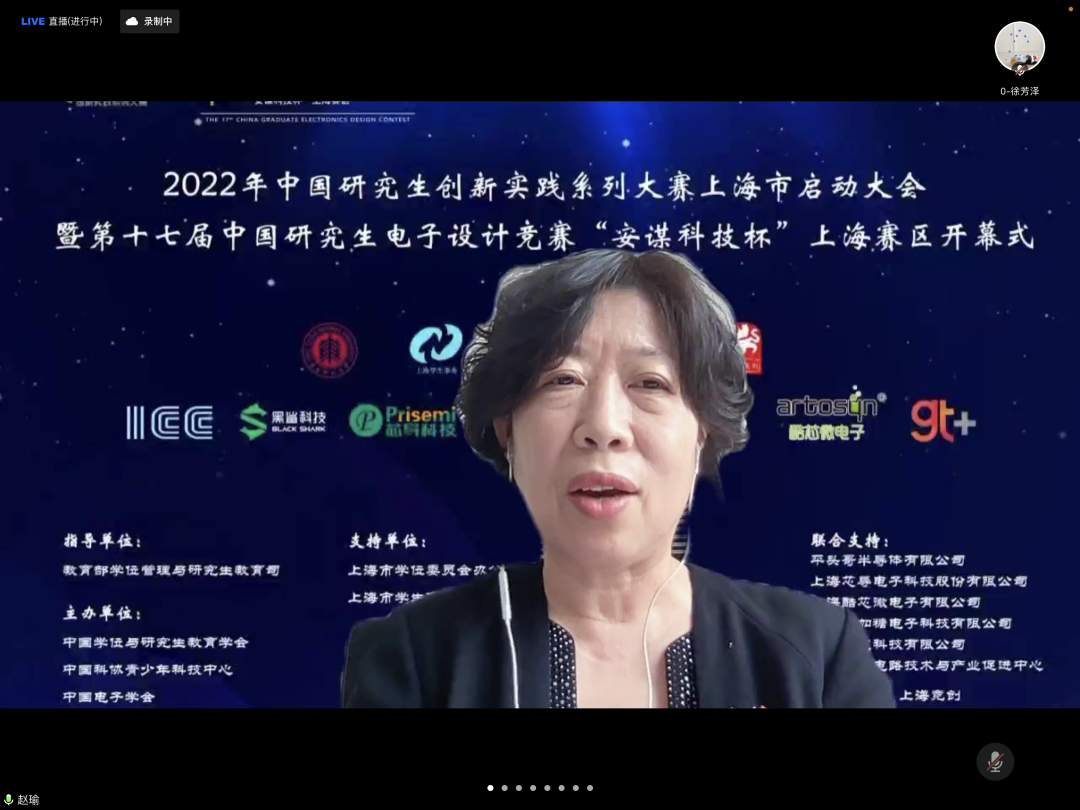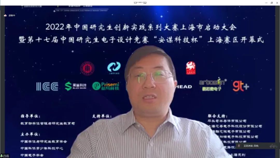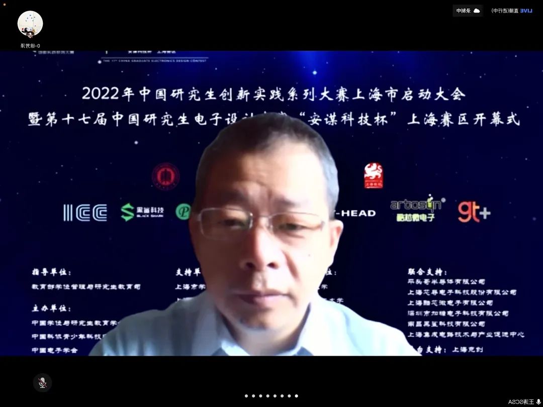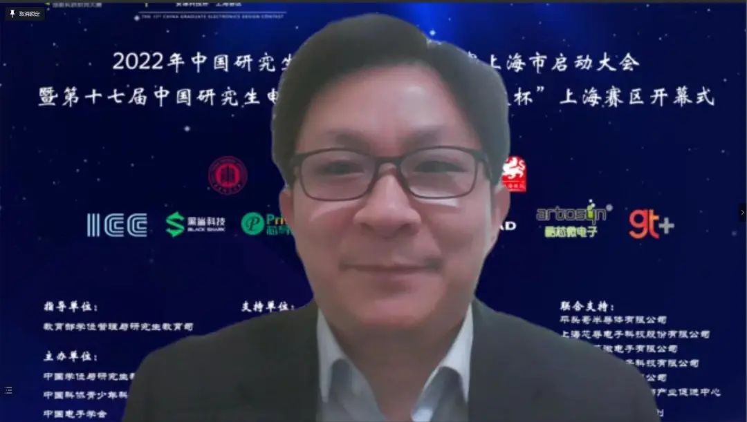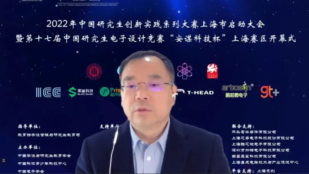 4月24日上午,2022年中国研究生创新实践系列大赛上海市启动大会暨“兆易创新杯”第十七届中国研究生电子设计竞赛“安谋科技杯”上海赛区启动仪式在腾讯会议举行。大会由上海市电子学会、华东师范大学承办,中国学位与研究生教育学会、中国电子学会、上海市教委、上海市学位办、上海市员工事务中心、上海市电子学会、上海市就业促进中心、上海市老员工科技创业基金会、华东师范大学相关领导、沪上公司产品单位负责人、赛事专家、企业代表、员工代表汇聚“云”端,出席本次启动仪式。仪式由华东师范大学通信与电子工程公司经理吕岳主持。