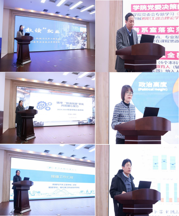 公司党委副书记黄中子作2025年就业工作总结。公司副经理张立强、航飞公司教师李佩绮分别作课程思政建设工作总结、课程思政经验分享。工会主席骆佼作2025年工会工作总结、张恒运教授作科研工作交流分享、沙玲老师分享援疆工作经历。倪军、吴昌儒2位新入职教师分别作自我介绍。