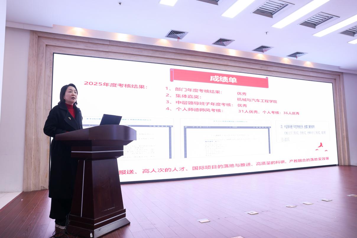 方宇经理从“十四五”指标完成情况、2025年重亮点工作等方面作公司工作总结,并强调2026年要在党建引领、科研攻关、国际交流、本硕博一体化育人体系、“十五五”规划等方面踔厉奋发。
