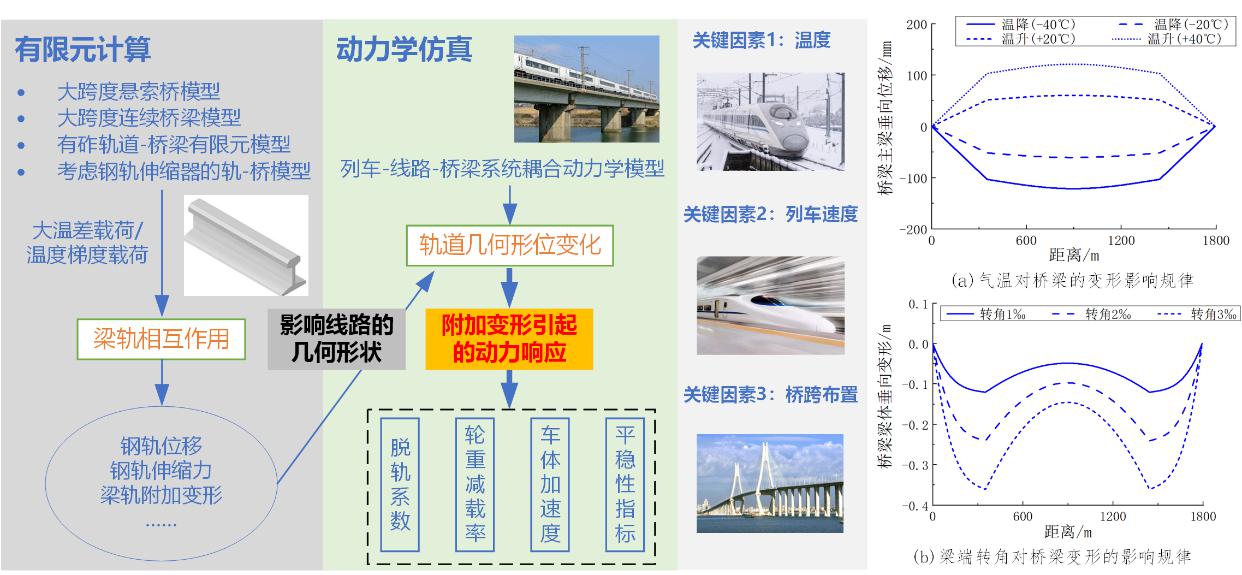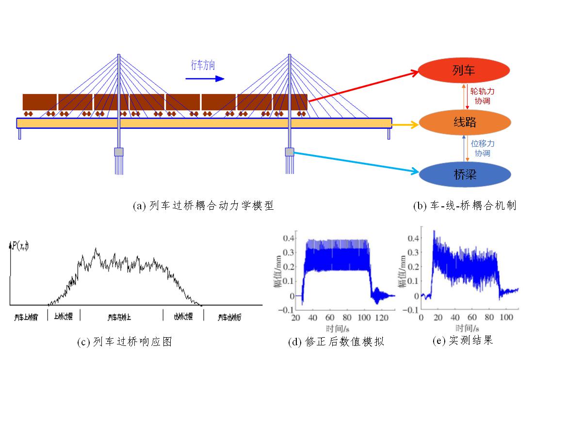 揭示了列车、线路和桥梁的耦合动力响应特性,探明了复杂因素下桥梁变形与轨道几何不平顺的映射关系,实现了列车、线路和桥梁耦合动力响应精细化计算,解决了复杂线路条件下轨道交通车-线-桥系统服役状态精确刻画的难题。