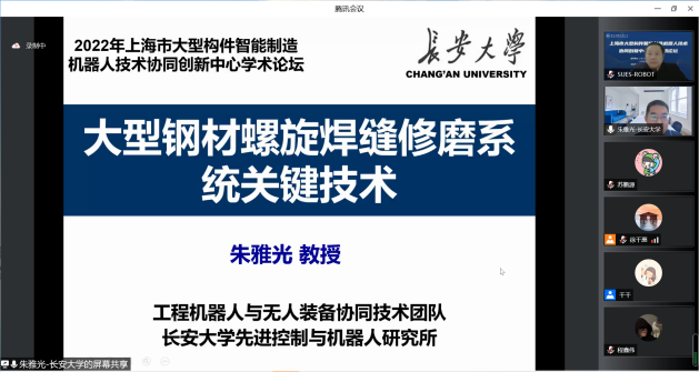 此次云端学术论坛于5月13日-5月15日为期三天线上召开,6场专家主题报告、16场分会场报告,20多位校内外学者共同探讨大型构件智能制造机器人的发展前沿与挑战机遇,促进航空航天、船舶海工、新能源汽车、轨道车辆等领域大型构件智能制造机器人技术的学术交流与应用创新。