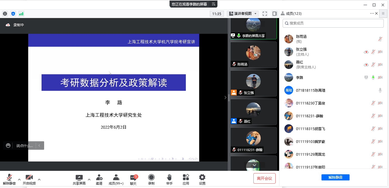 为营造良好学风,激发员工考研的积极性,增强同学们考研的信心,2022年6月2日下午,yl6809永利邀请了校研究生处副处长李路教授、公司机械设计系主任张旭教授、已被同济大学录取的公司本科生薛翰同学及公司研一员工丁明杰在腾讯会议召开了考研宣讲会,张立强副经理、辅导员及教务老师和公司2018、2019级有考研意向的同学近150人参加了本次宣讲会。会议由张立强副经理主持。