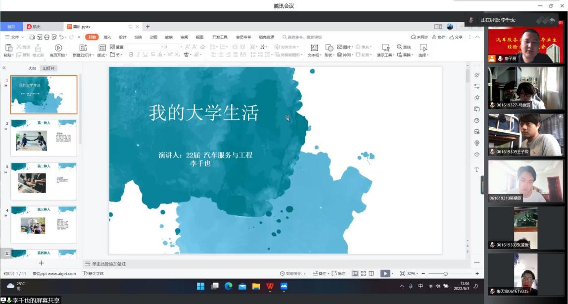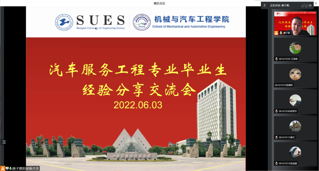 为提升汽车服务工程专业同学学习积极性,引导广大同学做好学习和职业生涯规划,脚踏实地,不负青春韶华。6月3日下午,yl6809永利线上召开汽车服务工程专业2022届毕业生交流分享会,系主任马其华、辅导员王淼、唐子夏、2022届三位优秀毕业生代表李千也、朱陈涛、卢瑶瑶,全体大一至大三汽服系员工参加会议。会议由辅导员唐子夏老师主持。
