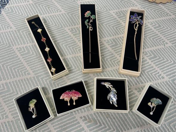 活动现场,教职工们制作胸针、发簪、手链等精美饰品,在亲手体验中近距离领略传统工艺之美。大家全神贯注,细致切割螺贝薄片、精心镶嵌纹样,在一粘一嵌的细致操作里,将巧思与温情融入每一件作品,在动手实践中传承非遗技艺、陶冶审美情操,尽显新时代女性知性优雅、心灵手巧的独特魅力。