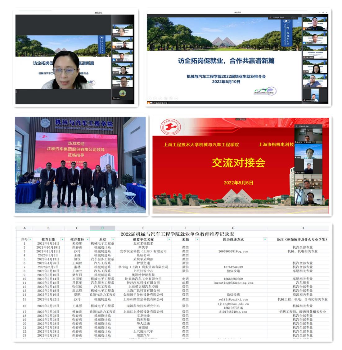 公司优化整合资源,加强信息共享,形成“全员推就业”局面。公司领导班子开展访企拓岗促就业系列活动,分别召开“访企拓岗促就业,合作共赢谱新篇”云端访企拓岗暨毕业生推介会、校企合作交流会等,邀请了上海华力、上海蔚来等十余家知名企业进行宣讲,在向用人单位推介几十名优秀毕业生的同时打通校企就业合作渠道。公司积极开展行业专业招聘会,组织毕业生参加线上“校园面试会”,根据未就业员工实际情况,为其匹配和推荐就业岗位,做到员工愿意和企业满意。公司教师微信群每天推送就业信息“不打烊”,形成“人人关心就业,人人促就业”的比超氛围。其中,汽车服务专业江磊老师、机械设计系张春燕老师累计为公司毕业生开拓就业单位30余家,岗位300余个,签约30余人。全院今年新开拓就业岗位达1500余个。此外,公司还积极挖掘长期合作企业潜能,公司就业辅导员主动对接华域汽车、延锋、上汽等优质企业,点对点进行推介,将员工精准内推到公司。经初步统计,2022年,公司共开展线下线上招聘会4次、宣讲会50余场,提供岗位3500余个,毕业生成功签约739人。